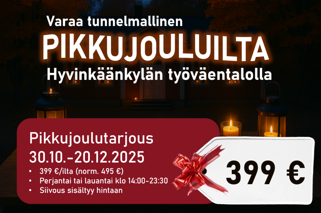 Etsitkö vielä täydellistä paikkaa pikkujouluille? Hyvinkäänkylän työväentalo kutsuu juhlimaan!